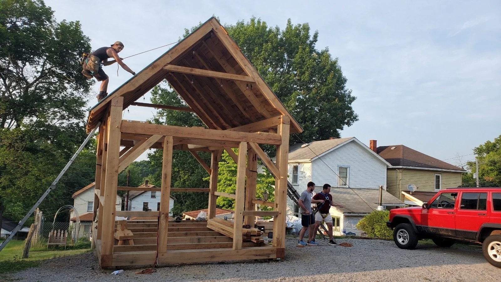How a small group of friends and family raised a 12x16 green oak timber frame by hand.